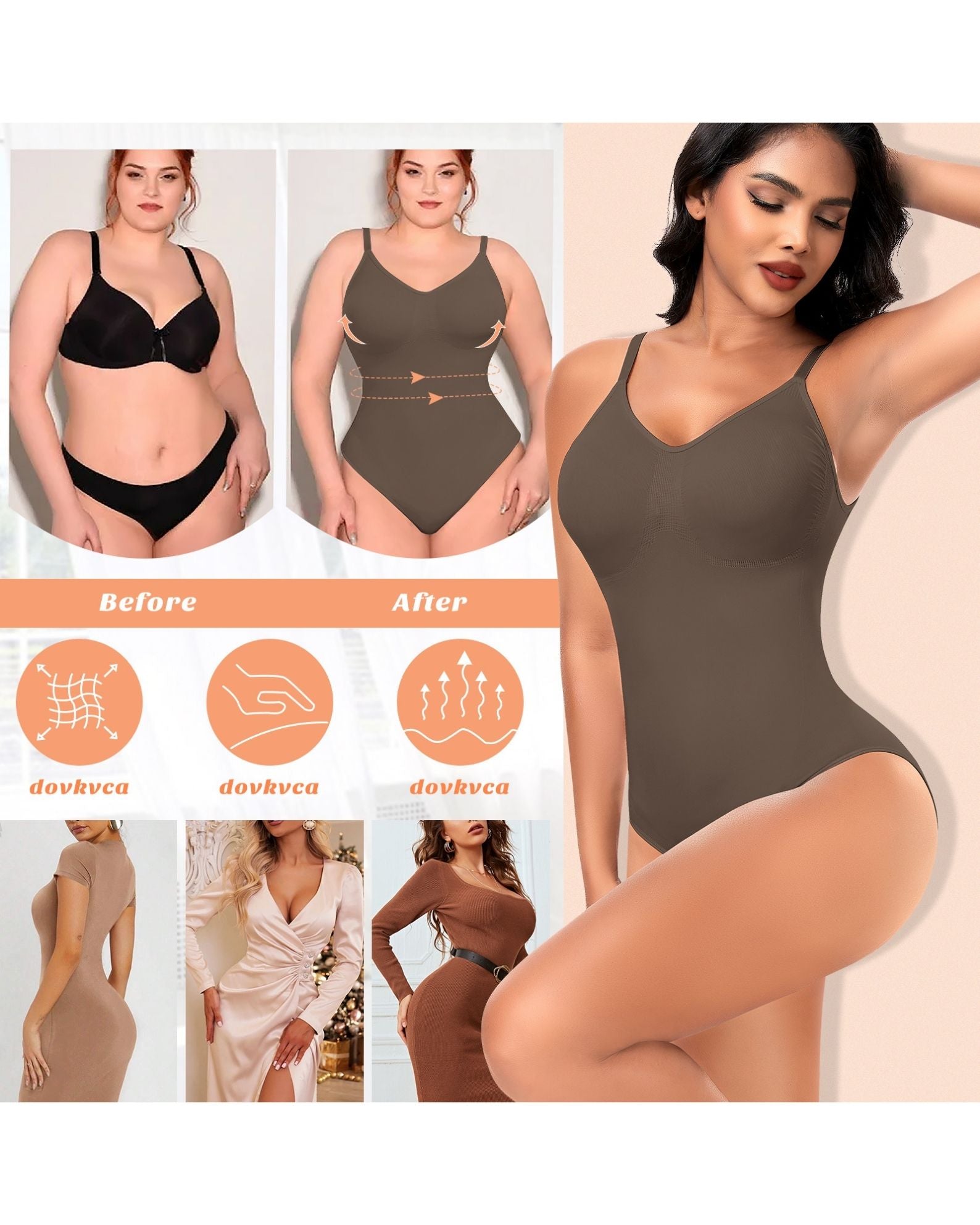 - ADJUSTABLE STRAPS - Whether you need more lift or a looser fit, the adjustable straps ensure the bodysuit stays securely in place, adapting to your movement throughout the day. This personalized fit makes it suitable for any body type.