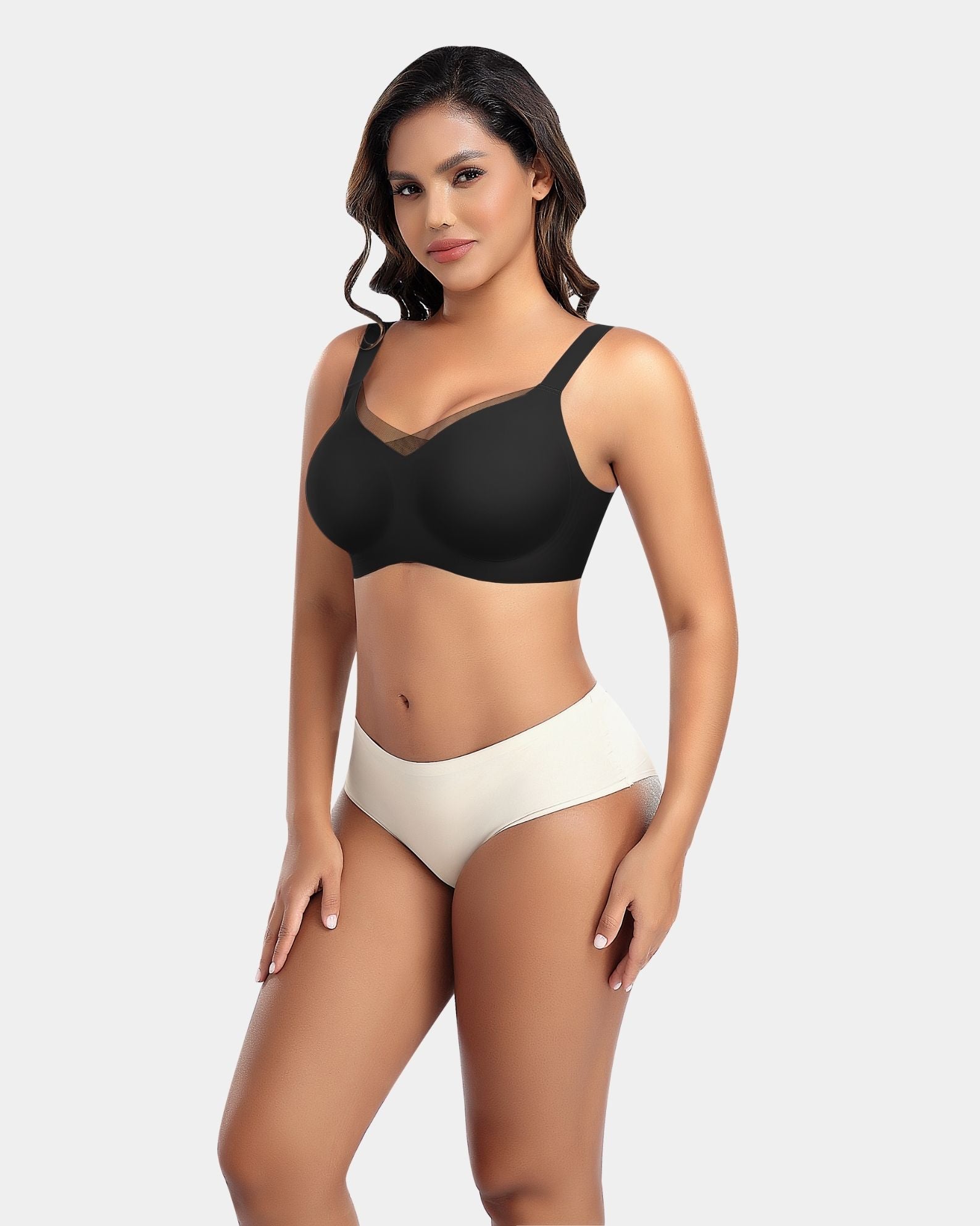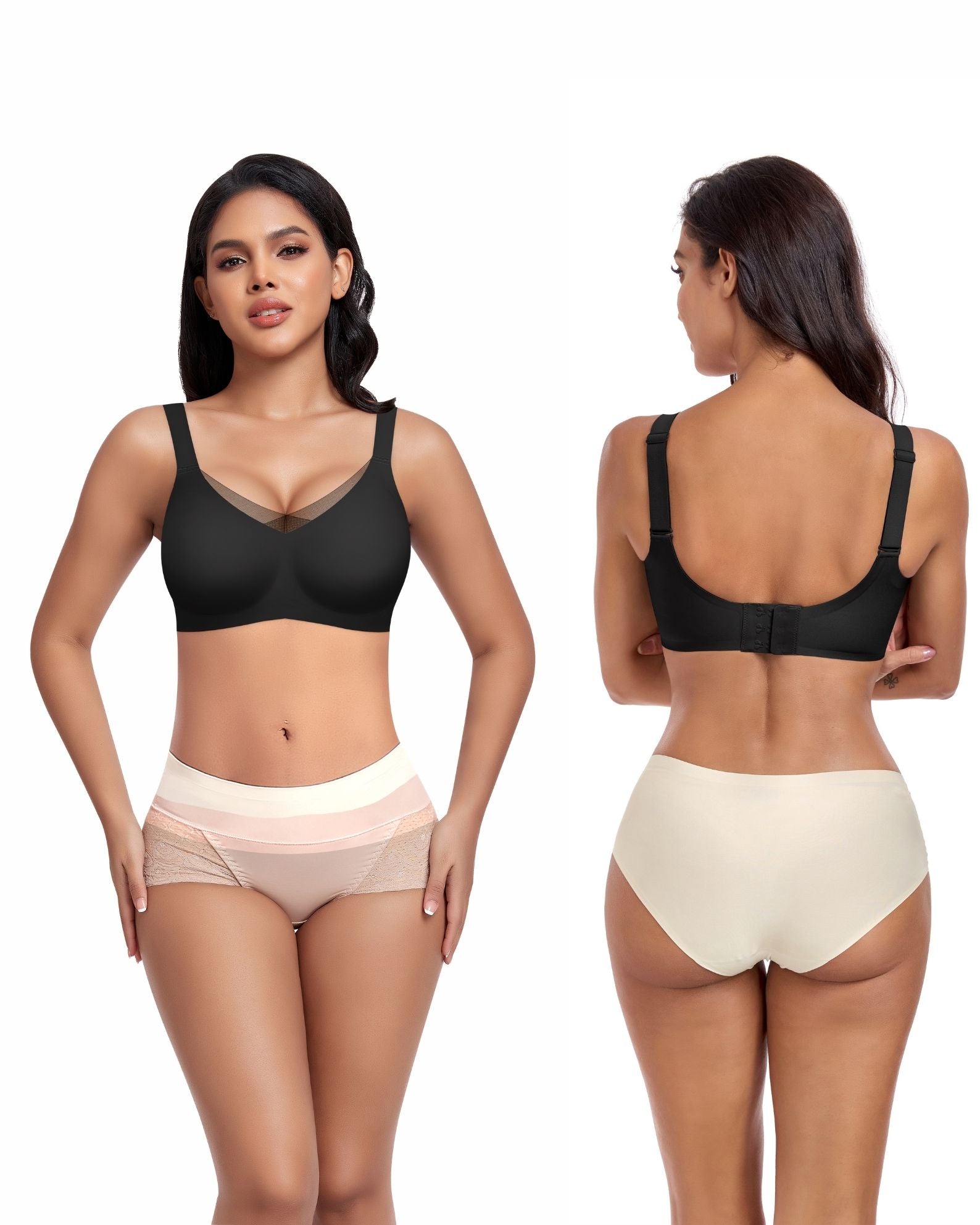 The elegant V-net front and U-back design are crafted from seamless, petal-edged fabric for a delicate, traceless look that enhances your silhouette.