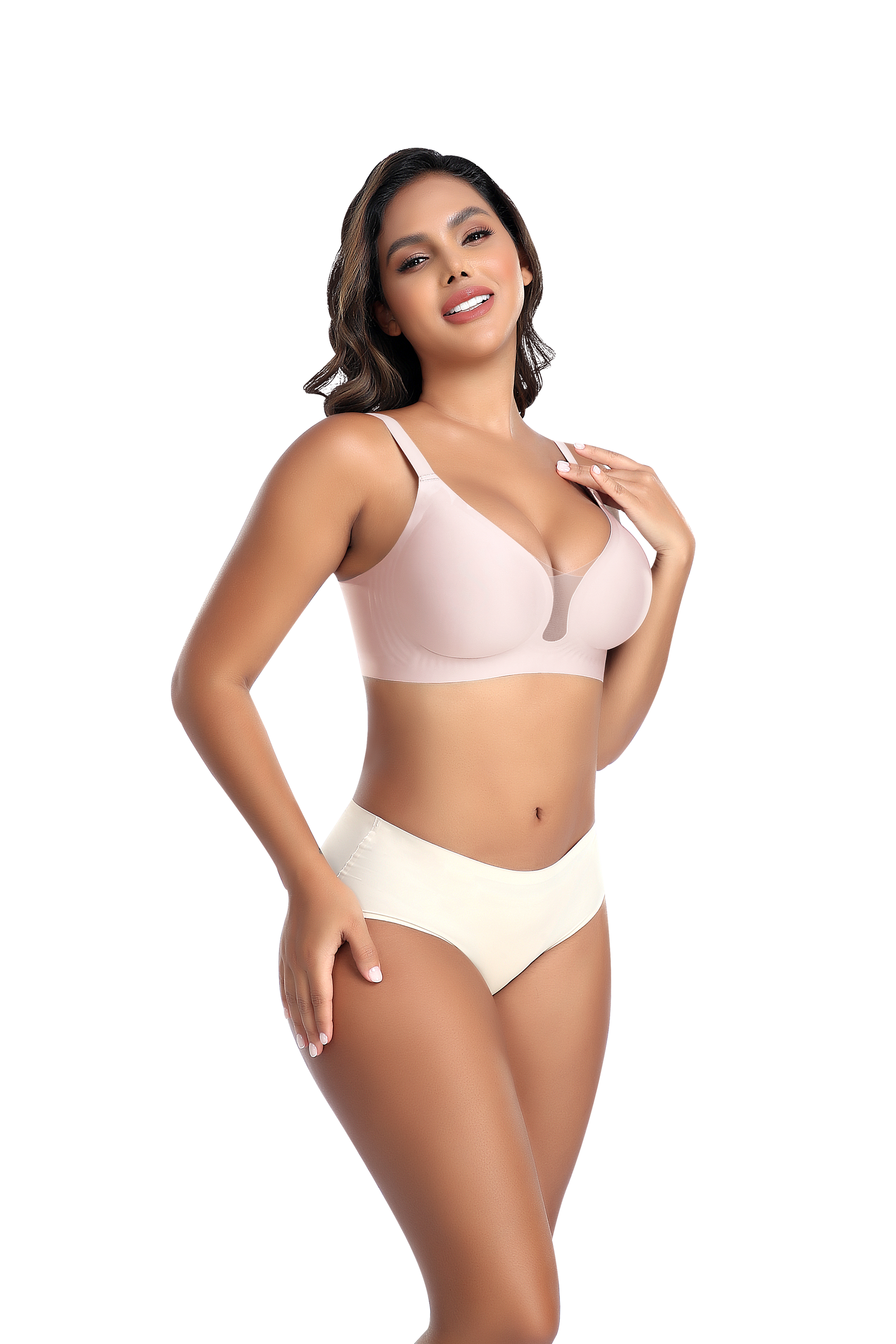 - V NECK SEAMLESS BRA - V neck design, simple and stylish. Smooth lines can well highlight your beautiful chest curve and collarbone line. Seamless design, so you can wear either a T-shirt or a vest without showing any traces of bra